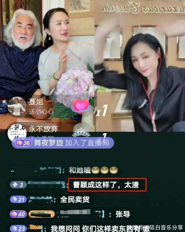 2017年,生完孩子后的曹颖变得低调了许多,她逐渐将自己的视线转移到儿子身上。然而,她还是想通过直播这种方式重新回到大众的视野。可是,她一出现在直播镜头前,就被网友们吐槽脸型大变样,像蛇精脸一样。曹颖事后通过微博回应,说自己老了,但老人家心里住着一个淘气的老小孩儿。为了挽回自己的形象,她直播连线近年来也酷爱直播的张纪中夫妇一起玩。但是在直播过程中,张纪中那边很安静,而曹颖却像一个过于活跃的孩子,上蹦下跳,一直大力吆喝着让人买她的商品。她这种咋咋呼呼的表现与直播间安静的氛围形成了鲜明的对比,让一众网友非常反感,在评论区几乎是一边倒地让她赶紧走,吐槽她太吵人,不尊重人。而就在她在直播间被网友追着骂的时候,一直不被看好的“隐形老公”王斑却凭借着自己的努力终于抬起了头。